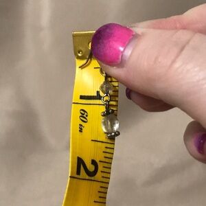 These beautiful dangle earrings are in excellent vintage condition. They are an unmarked silver tone metal hook back earring. Some discoloration on the hooks shown in pictures 4 & 5. They have a link dangle with clear accent beads to add a little sparkle.