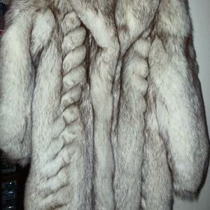 ✨ Stunning vintage Silver Fox Fur Coat in impeccable condition. This is a true statement piece featuring an incredibly rare spiral rope design along the body and sleeves, showcasing masterful furrier craftsmanship.