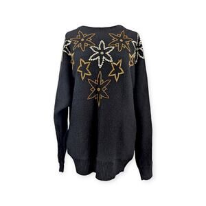 Vintage silver & gold embellished poinsettia Christmas sweater