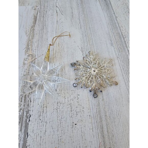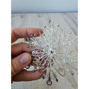 Vintage silver snowflake beaded ornament star Xmas tree star with a gold top