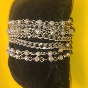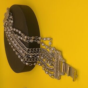 Vintage silver tone bracelet. With small beads. Multilayer chains. This is pre-owned condition. No maker's mark. This is very old. It has a lot of wear, but it is still very pretty. Note pictures. The length is seven inches.