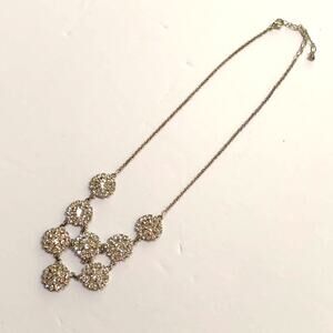 Vintage silver tone chain necklace with white rhinestones bib delicate romantic