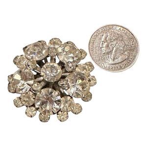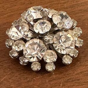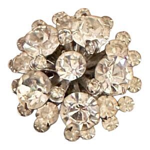 Vintage silver tone cluster pin brooch with multi-sized Rhinestones