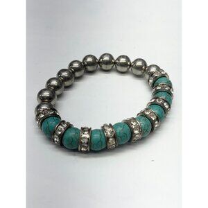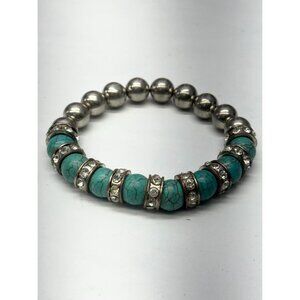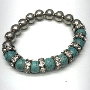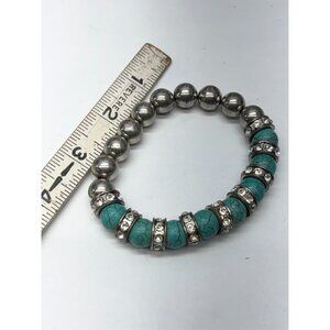 Vintage silver turquoise rhinestone beaded stretch bracelet. Rhinestones silver tone beads and faux turquoise beads. Vintage stretch bracelet. MN53FG.