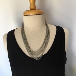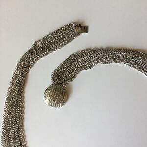 Vintage silver-tone waterfall multi-chain necklace with hidden box clasp