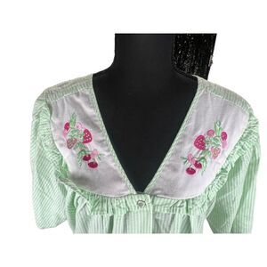 Vintage simply basic green white stripes strawberry collar housecoat MuMu 1x
