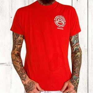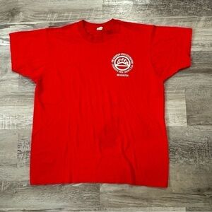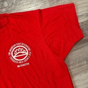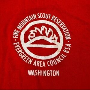 Vintage red single stitch Evergreen Washington fire mountain t shirt. Couple spots on front screen stars made in USA tagged XL fits modern men’s L measures 21x28 tourist gorp