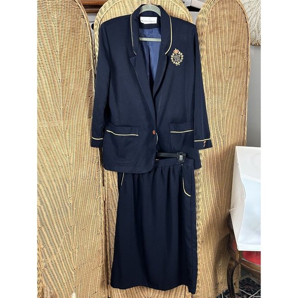 Vintage skirt suit nautical Brenda Goode navy crest patch small