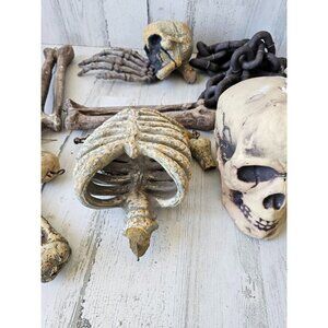 Vintage skull bones skeleton AS IS chains Halloween prop lawn ground