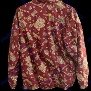 Throwback maroon ‘swish’ jacket with zip. 90s throwback that has fall thanksgiving design. Size medium.