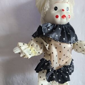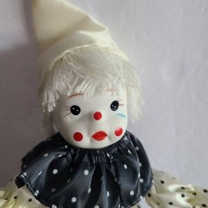 Vintage small porcelain Clown white/black polka dot