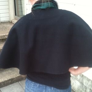 Black capelet capelet , vintage .. As shown .. Great accessory for that outfit .. Tag says 80% wool 20%nylon .. Lining 100% rayon acetate . Style 9600 size small .. $155 to $99 !! Has two button holes a the top of the shoulder blades in back .. If you love vintage . You'll adore this !!