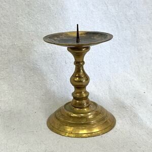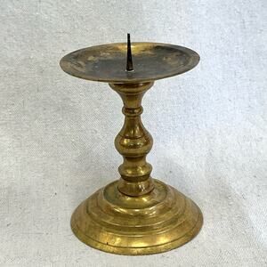 Vintage solid brass 5 inch pillar candlestick with center spike Made in India