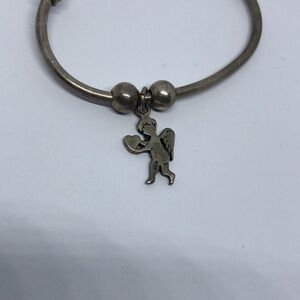 Vintage solid sterling silver cuff romantic cherub angel charm dangle bracelet