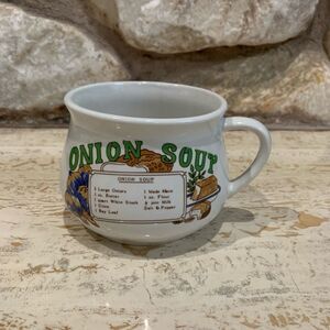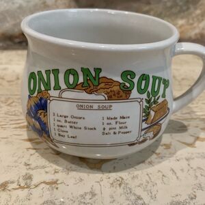 Vintage soup mugs with recipes onion & mushroom soup set of two
