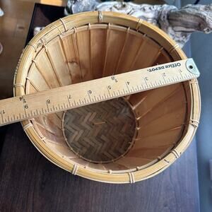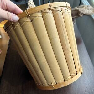 Vintage split reed Rattan and Bamboo planter waste basket trashcan