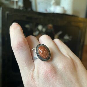 🌹 Vintage sterling silver goldstone/Sunstone Cocktail stone ring Boho Witchy