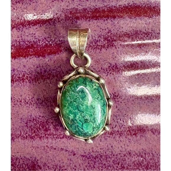 Stunning handmade vintage sterling silver green turquoise pendant. See photos for example of size EUC beautiful stone.