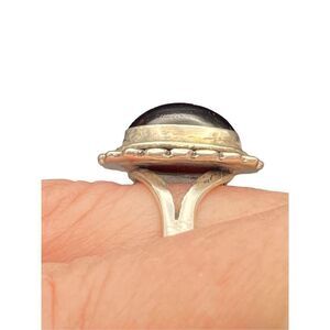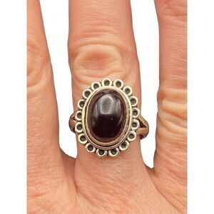 Vintage sterling silver 925 oval garnet cabochon surrounded by open swirls size