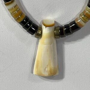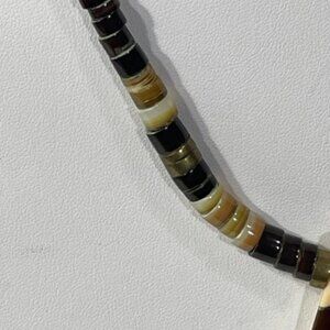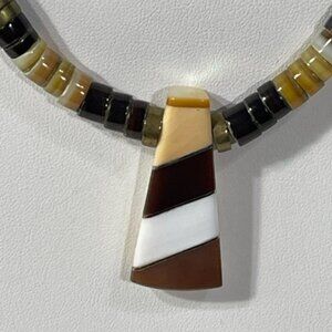 Vintage stone and inlay heishi necklace. Shell, onyx and jasper.