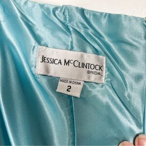 Vintage strapless sz.2 Jessica McClintock dress in light aqua blue with rosette
