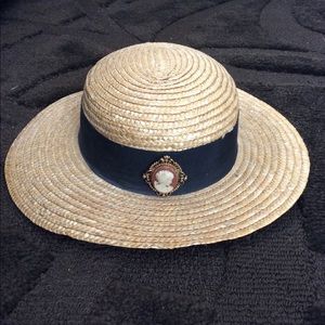 Vintage straw boater hat cameo