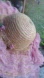Style: Women's vintage straw hat with two tiers of lace trim above the brim. Trailing bow at rear. Floral accent above lace.