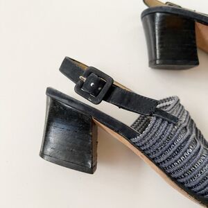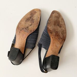 Vintage stretchy blue pointed toe elastic mules low block heel 90s Guess 8.5