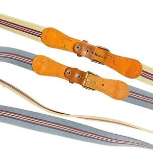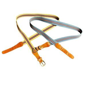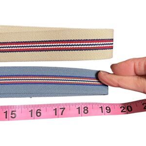 Vintage striped stretch webbing and leather belts fits upto 38” waist