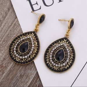 Ethnic vintage Retro black Bohemian Rhinestone Bead Drop Earrings For Women