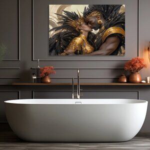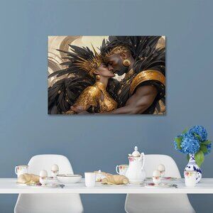 Vintage style African king and queen picture art wall decorationWooden FraCmed anvas painting Thickness 2.25cm0.9inch High quality Wall Art Prints.