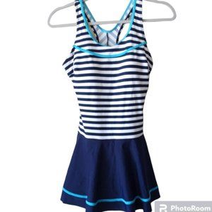 Vintage style Blue White Striped Swim Dress M