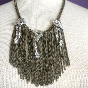 Vintage Style Fashion Necklace with crystals and antique bronze chain.