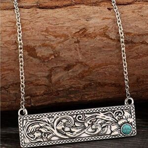 Vintage style Rectangular Fake Turquoise Carving Zinc Alloy Pendant Necklace