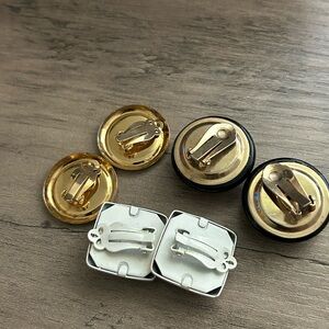 Vintage style Set of Black, White, and Teal Clip On Earrings
