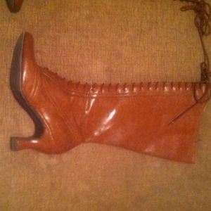 Stylish vintage rouge rust/ brown boot lace up the front zip on the inseam, I get compliments everywhere I go in these babies!