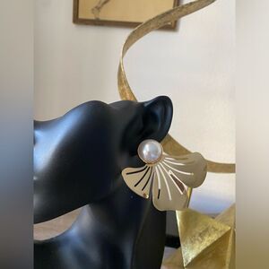 Vintage style half flower pearl detail earrings in gold hardware