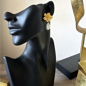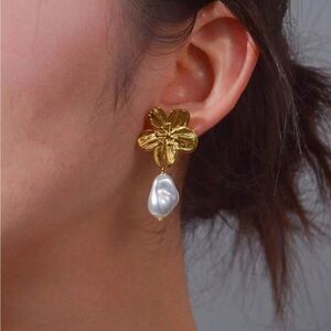 Vintage style flower pearl drop earrings in 18k gold plated hardware