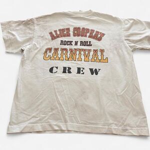 Rock out in rock n roll style with this Alice Cooper Carnival crew T-shirt, featuring a subtle tie-dye effect for a fresh twist on classic rock merch. This size medium tee boasts bold graphics and a soft, worn-in feel that’s perfect for everyday casual wear or festival looks.