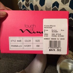 Vintage style wedding shoes with gems , worn once on wedding day. So comfy, wedge style , your feet will not hurt in these , I promise. Loved these !!!