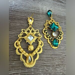 Vintage style green detail drop earrings in 18k gold plated hardware