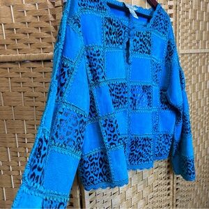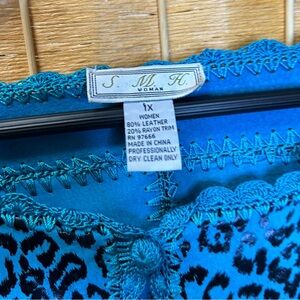 Vintage suede patchwork brocket jacket in blue 1X animal print size 1X