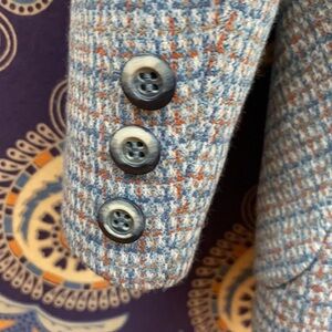Southampton sportswear brand Vintage orange green blue plaid jacket no size tag measurements posted gorgeous buttons pockets on the front of the inside some feeding on the lining otherwise great vintage condition condition