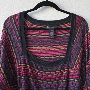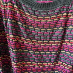 Vintage sweater dress, perfect for the holidays Burgundy, gold (sparkly) purple and black striped dress with square neck