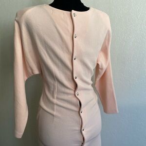 Elbow length sleeve, gold button back closure, sweetheart neckline. Tag with size is missing. No visible flaws