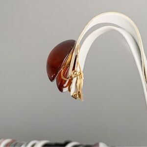 Vintage swirled root beer apple juice Bakelite amber dome clip on button earring