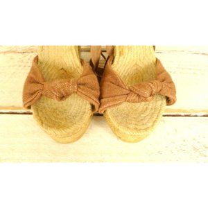 Vintage tan brown canvas open toe platform wedge espadrille sandals/6.5-7