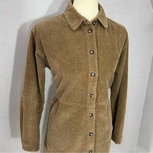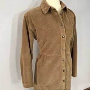 For fans of Academia Inspiration, USA Made, Classic Corduroy Fabric, Timeless Design, Nostalgic Charm, Essential Piece, Wardrobe Staple, Collectible Fashion, Retro Revival, Preppy Style, Academic Fashion, 70s 80s Revival, Corduroy Dress, Button-Front Closure, Long Sleeve, Tan Neutral Color, Vintage Clothing, Ralph Lauren, Tommy Hilfiger, Gant, J.Crew, Brooks Brothers, Twee Fashion, Retro Academia, Classic American Style.