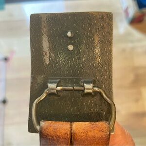 Vintage tan leather braided stitched belt with thick Gold tone belt buckle 44
