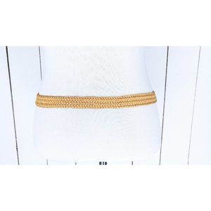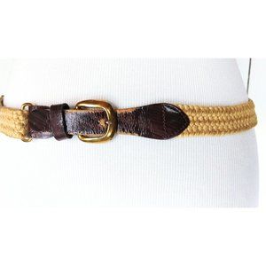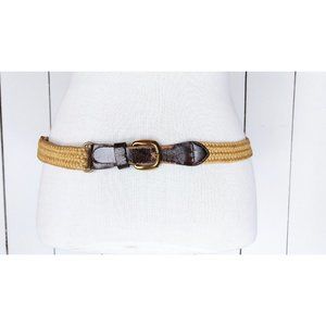 Vintage tan/light brown elastic stretch chord leather belt/woven chord elastic belt